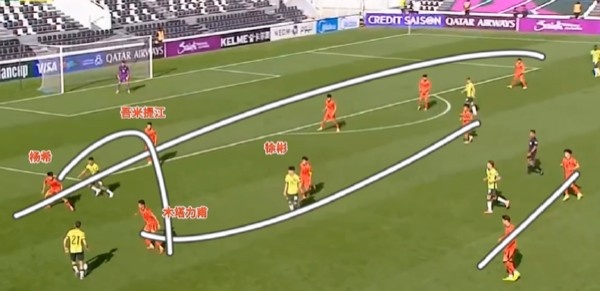其实跟本届U23亚洲杯有类似的地方,他的边翼卫胡荷韬很多时候更像是中场或者是边前卫。